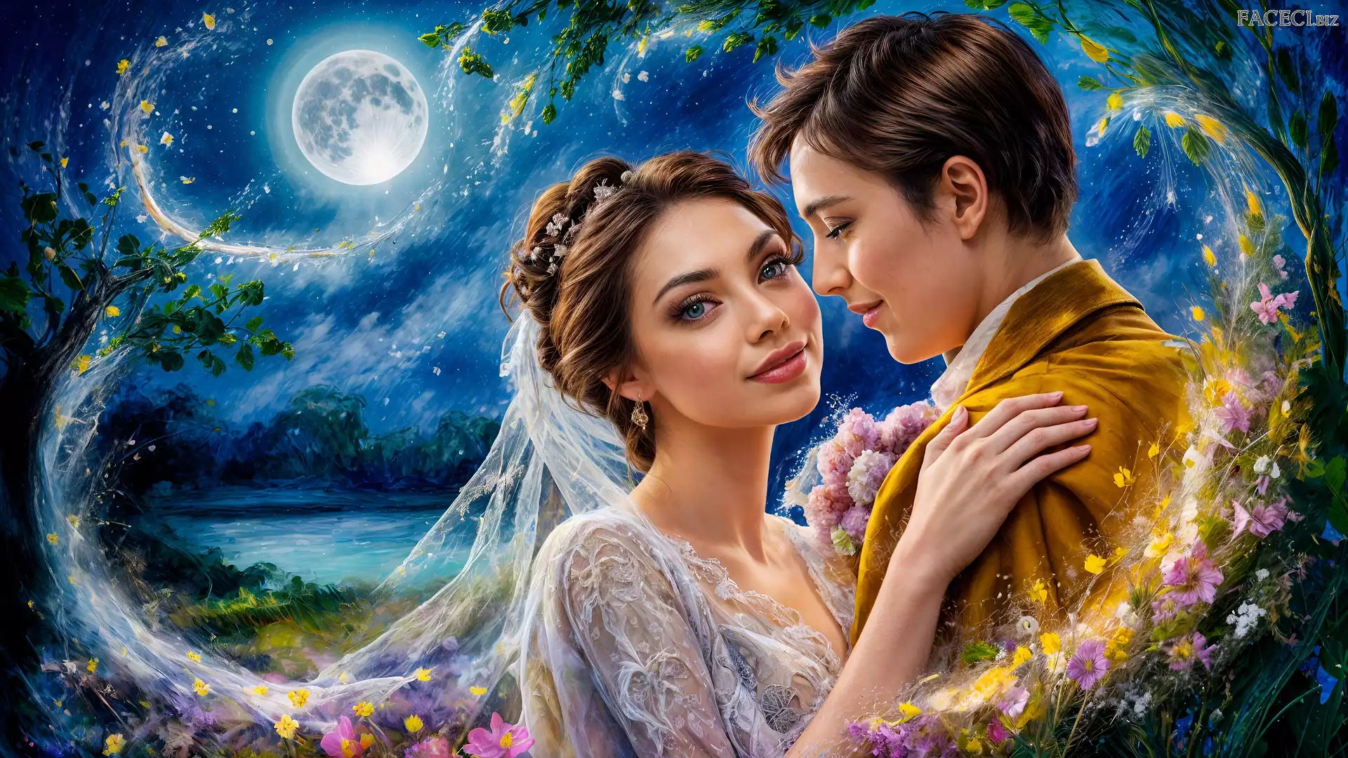 Grafika, Księżyc, Młoda, Para, Kobieta, Mężczyzna - faceci.biz